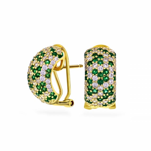 Øredobber i forgylt sølv med hvite og grønne zirkonia. H: 17 mm. B: 8 mm.