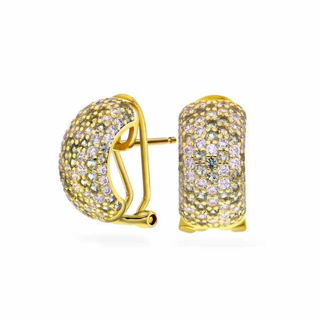 Øredobber i forgylt sølv med hvite og lys grønne zirkonia. H: 17 mm. B: 8 mm.