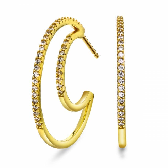 Øreringer i 925 forgylt sølv med zirkonia fra Arne Nordlie. H: 27 mm.