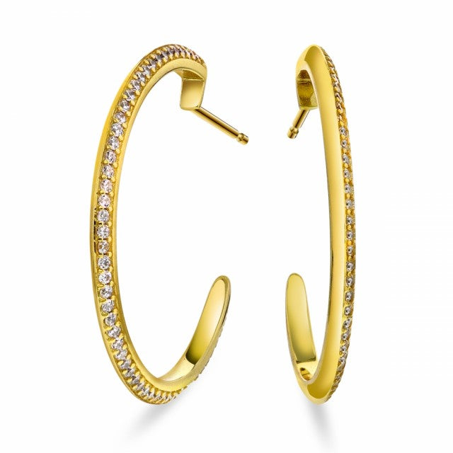 Øreringer i 925 forgylt sølv med zirkonia fra Arne Nordlie. H: 29 mm.
