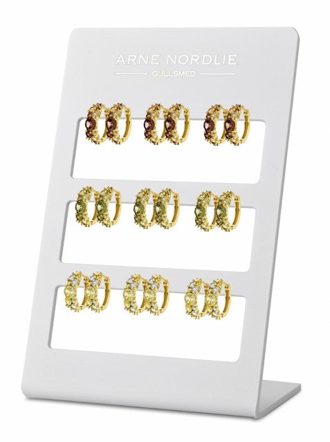 Øreringer i 925 forgylt sølv med gul zirkonia fra Arne Nordlie. H: 16 mm.