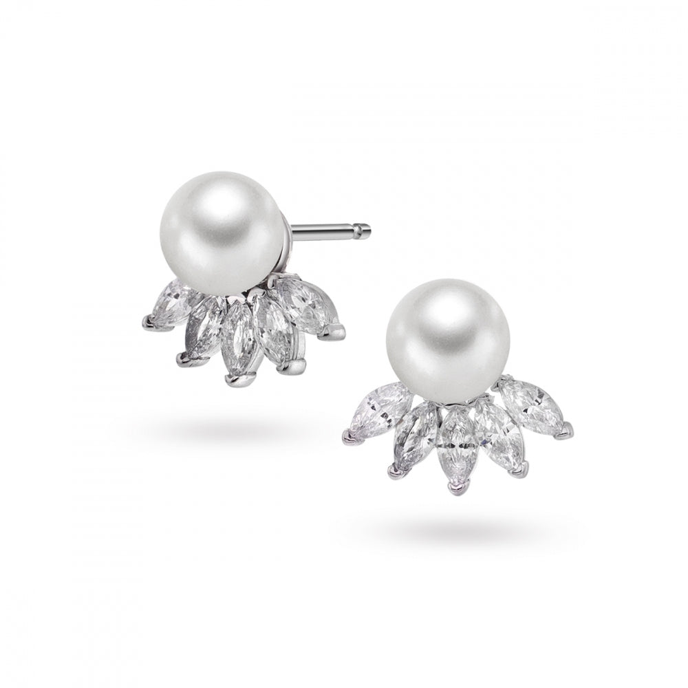 Øredobber i rhodinert sølv med perle og zirkonia fra Arne Nordlie. H: 11 mm.