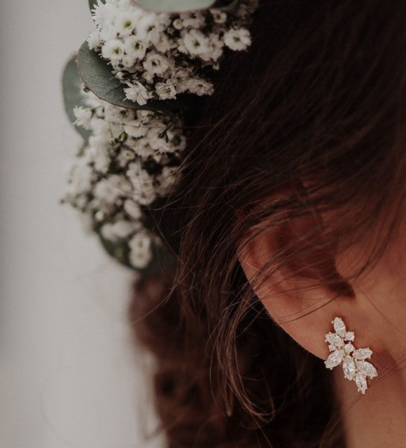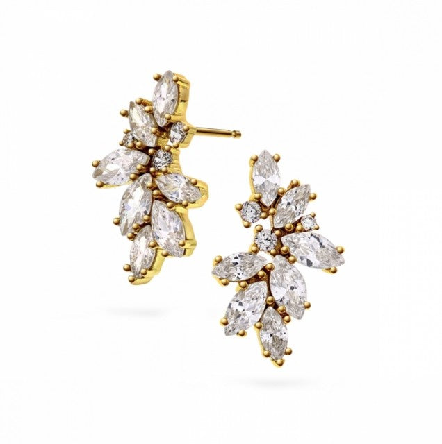 Novia Blad Øredobber i forgylt sølv med hvite zirkonia