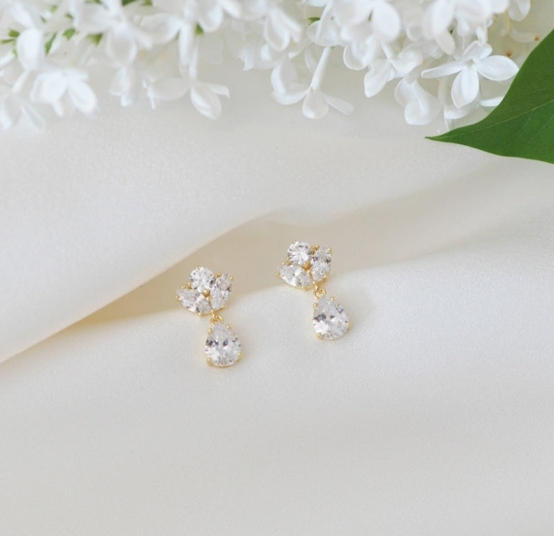 NOVIA BLOMST ØREDOBBER I FORGYLT SØLV, HVIT ZIRKONIA
