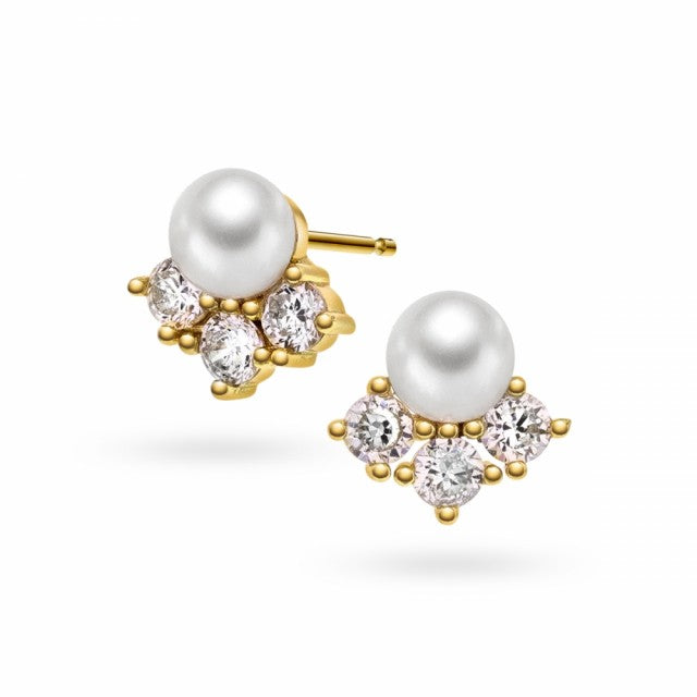 Øredobber i forgylt sølv med zirkonia og perle. B: 10 mm.