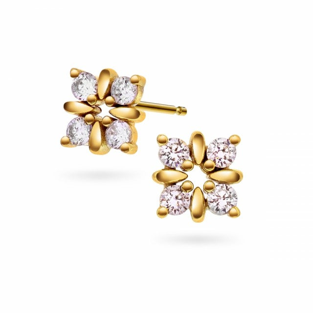 Øredobber i forgylt sølv med zirkonia. H: 7 mm, B: 7 mm.