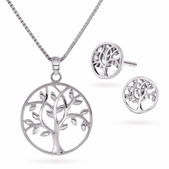 Med livets tre smykkesett får man et personlig og pent smykke med ørepynt, der treet kan symbolisere alt fra liv og glede, til familie eller savn. Bredde anheng: 21 mm. Bredde ørepynt: 8 mm. Oksidert sølvkjede 42+3 cm medfølger.