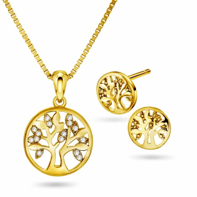 Smykkesett i forgylt sølv med zirkonia, Livets tre