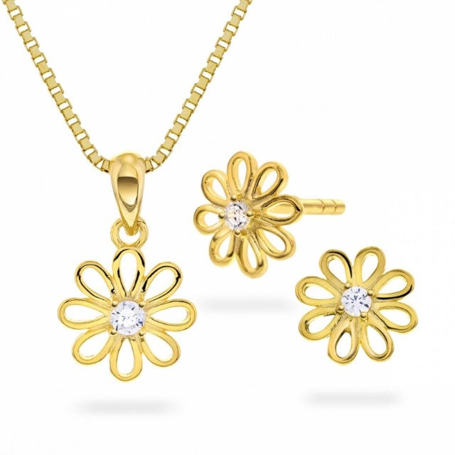 Smykkesett i forgylt sølv med zirkonia, Blomst