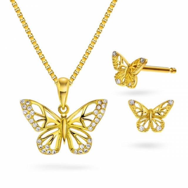 Smykkesett i forgylt sølv med zirkonia, Sommerfugl