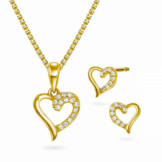 Smykkesett i forgylt sølv med zirkonia, Hjerte
