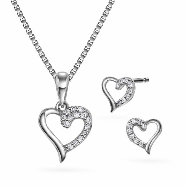 Smykkesett i sølv med zirkonia, Hjerte