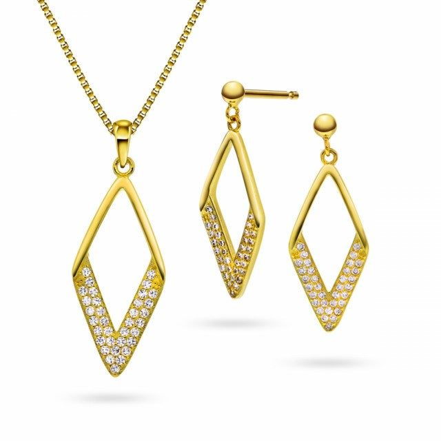 Smykkesett i forgylt sølv med zirkonia. Kommer i gaveeske.