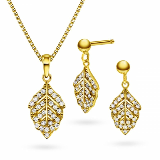 Smykkesett i forgylt sølv med zirkonia, Blad