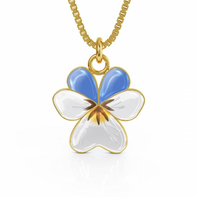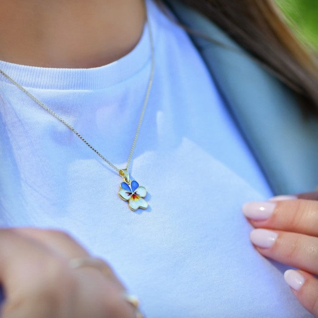 Fra Arne Nordlies egen smykkeserie "Liv" som inkluderer nydelige smykker og ørepynt i forgylt sølv med glassemalje. Kjede 42+3 medfølger. H: 22 mm.