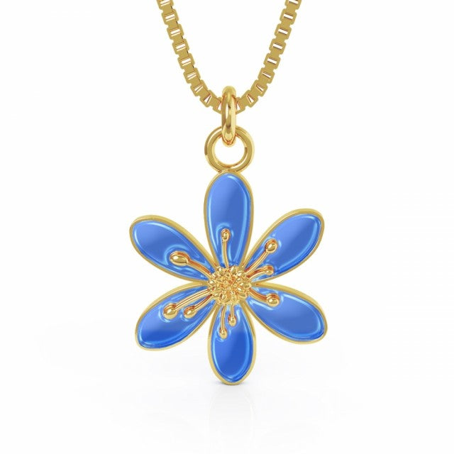 Fra Arne Nordlies egen smykkeserie "Liv" som inkluderer nydelige smykker og ørepynt i forgylt sølv med glassemalje. H: 22 mm. Kjede 42+3 medfølger.