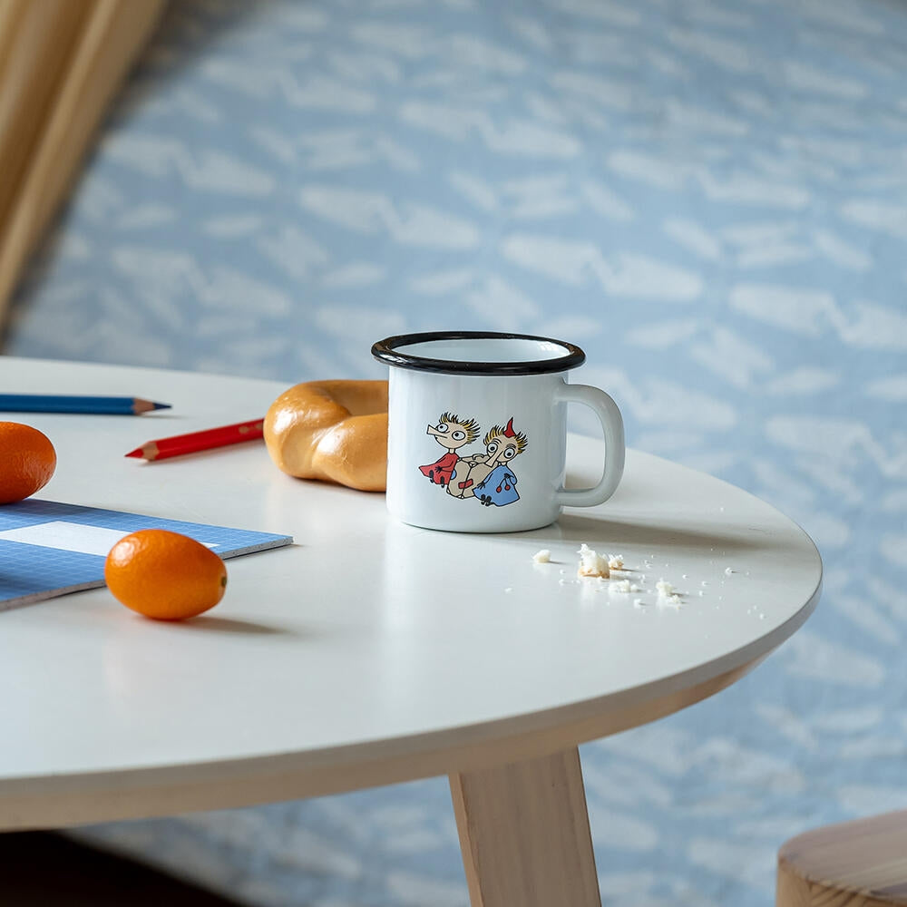 Liten og vakker emaljekopp for de minste hendene. Emaljekoppen har en myk kantovergang for å skape en behagelig overflate å drikke fra. Emaljekoppen er godkjent for bruk på komfyr, induksjonsplate, ovnen og i oppvaskmaskin. Må ikke brukes i mikrobølgeovn.