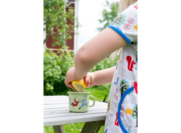 Emaljekoppen har en myk kantovergang for å skape en behagelig overflate å drikke fra. Emaljekoppen er godkjent for bruk på komfyr, induksjonsplate, ovnen og i oppvaskmaskin. Ikke godkjent for bruk i mikrobølgeovn.