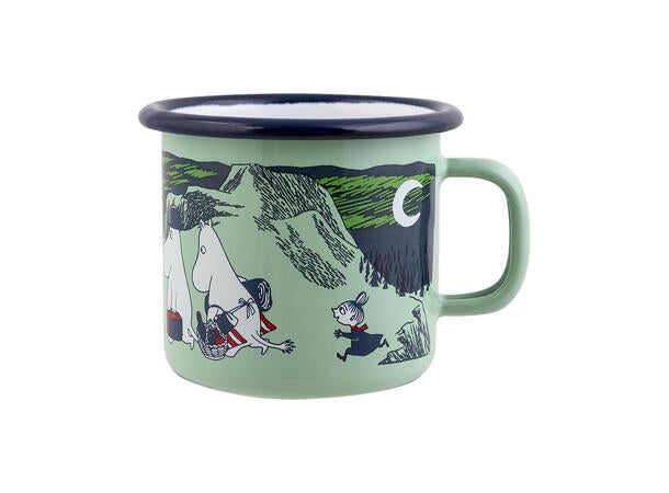 Emaljekoppen har en myk kantovergang for å skape en behagelig overflate å drikke fra. Emaljekoppen er godkjent for bruk på komfyr, induksjonsplate, ovnen og i oppvaskmaskin. Ikke godkjent for bruk i mikrobølgeovn.
