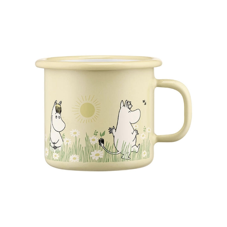Mummikoppen med Mummifamilien som passer perfekt i hendene på en liten turgåer. Emaljekoppen har en myk kantovergang for å skape en behagelig overflate å drikke fra. Emaljekoppen er godkjent for bruk på komfyr, induksjonsplate, ovnen og i oppvaskmaskin.