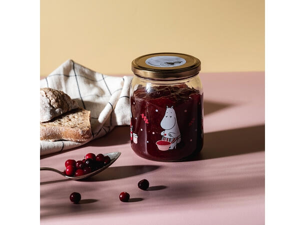 Mummi glasskrukke med skrulokk av metall. Passer perfekt til syltetøy! Tåler oppvaskmaskin. Medfølger 4 klistremerker.