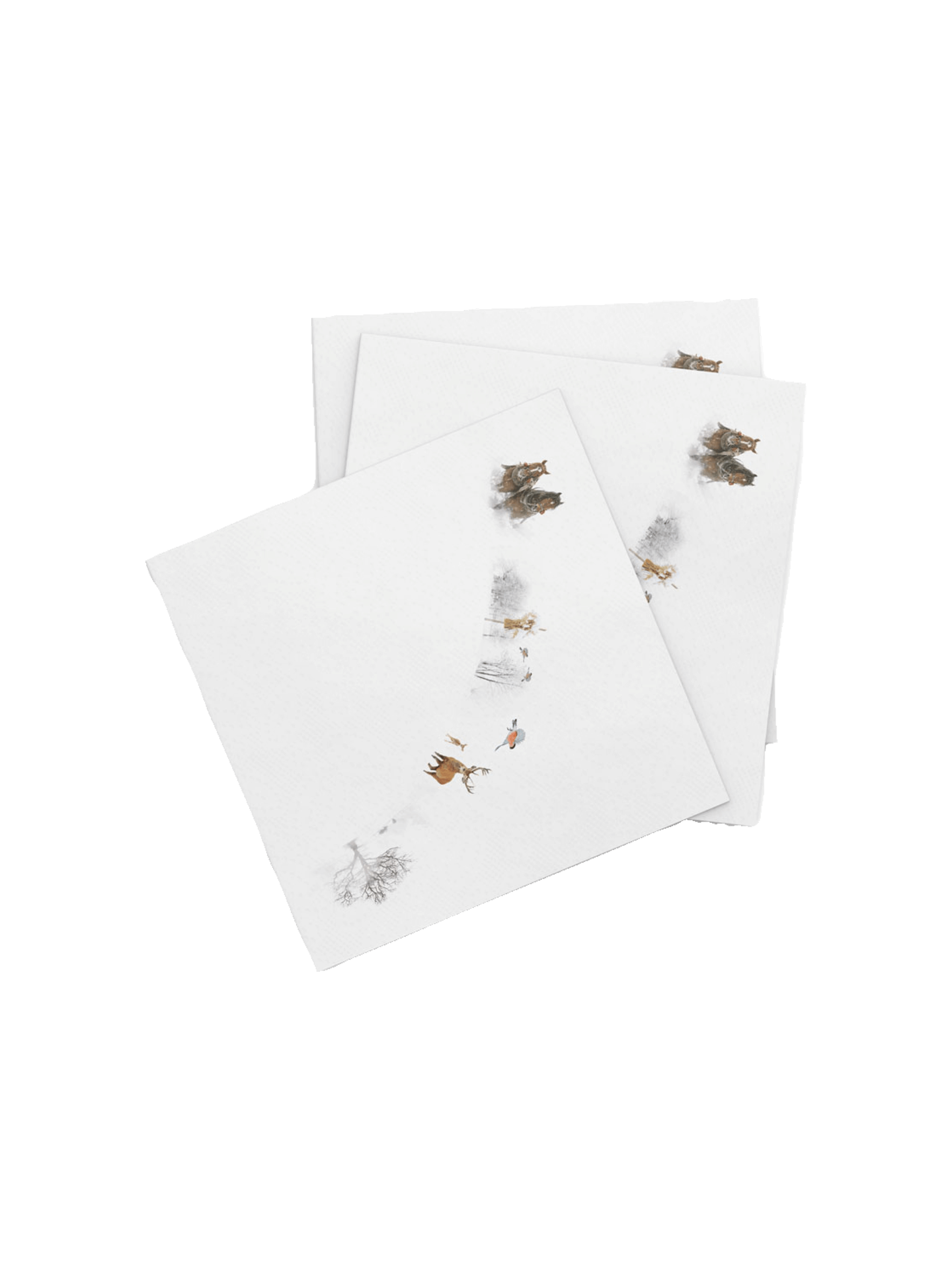 Julemorgen Story serviett er dekorert med delikate hjerter, snøfnugg og girlandere.