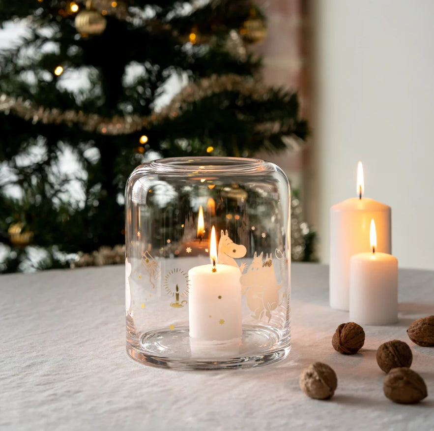 Nydelig Mummi-lykt i glass til kubbelys eller annet. Med motiv fra Sparkling stars. H: 18cm.