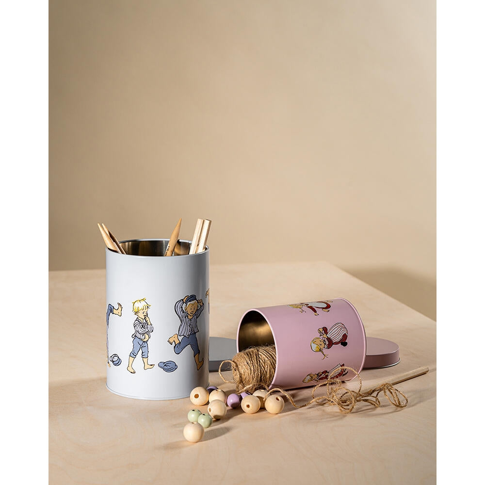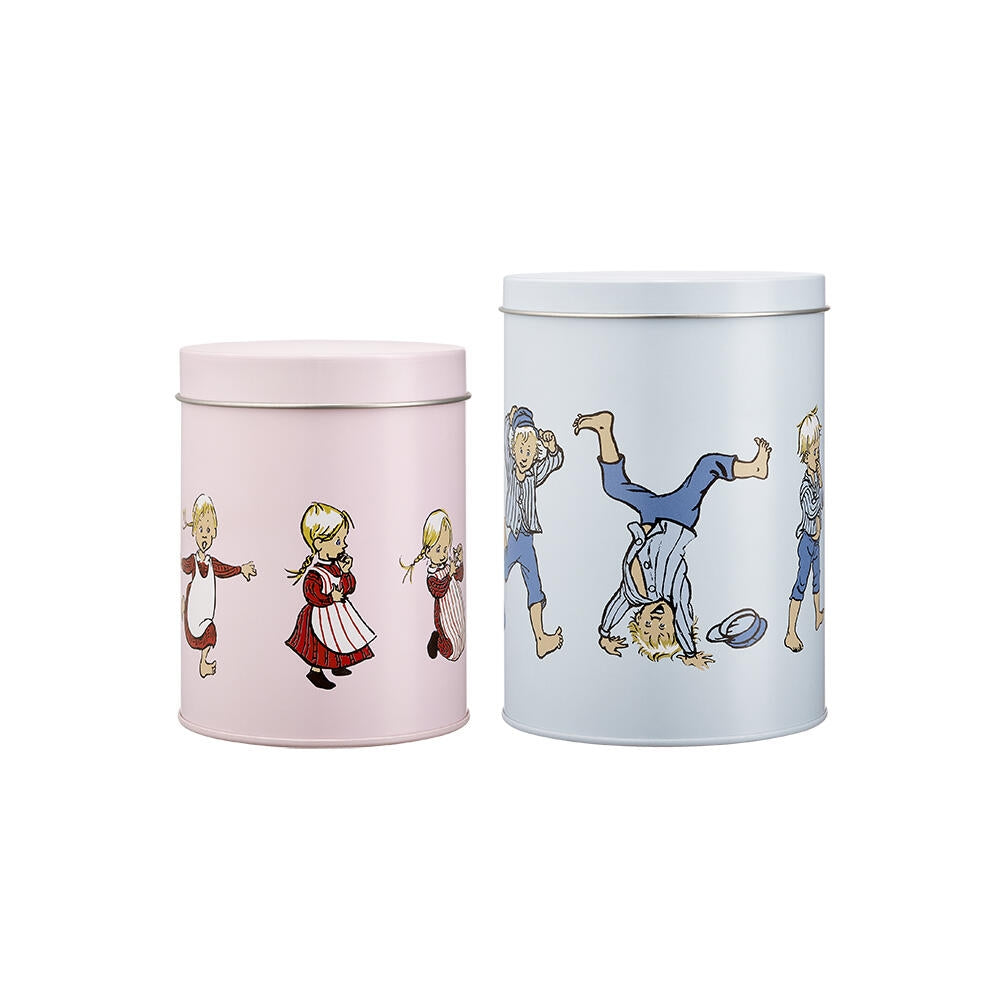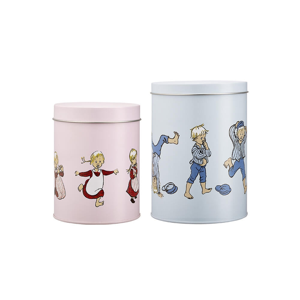 Emil fra Lønneberget oppbevaringsbokser 2stk i tinn. Passer like fint på kjøkkenet som på barnerommet. Håndvask.