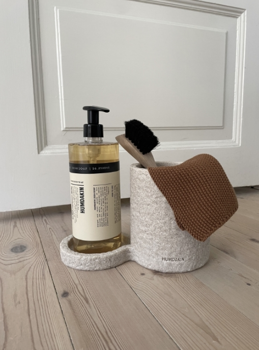 Dette oppvasksettet i sandstein er en enkel og hendig oppbevaringsløsning for dine oppvaskbørster, oppvaskmiddel eller kjøkkensåpe. Kan også brukes som potteskjuler og holder til blant annet duftlys.