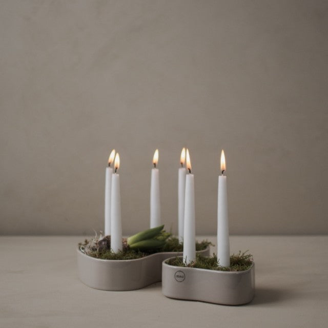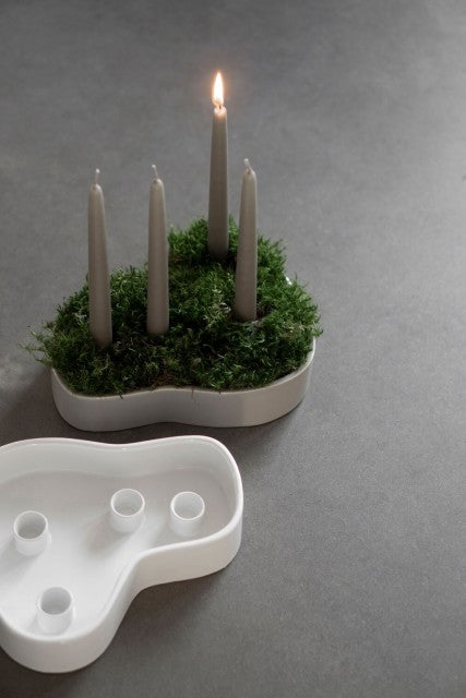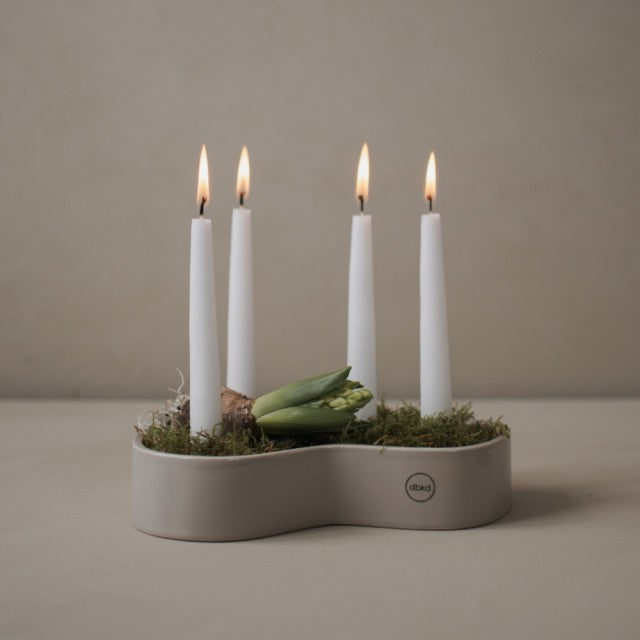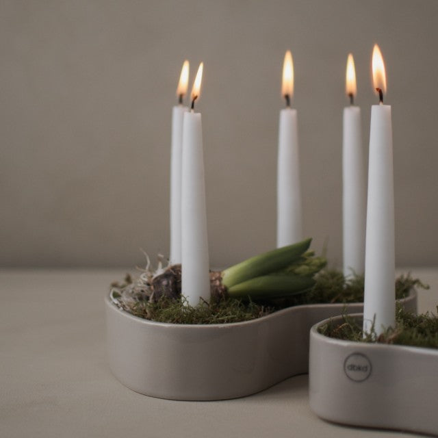 En lysestake med plass til 4 lys! Fyll den opp med mose eller annen pynt og la den bringe den koselige følelsen til deg! Finnes i to farger.