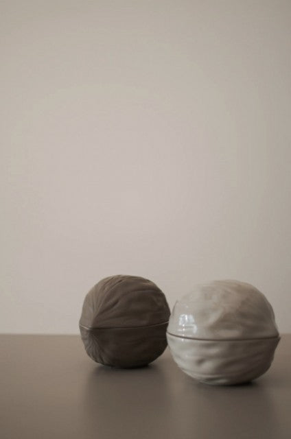 Denne sjarmerende skålen er formet som en valnøtt, noe som gjør den til et unikt og lekent tillegg til kjøkken- eller spisestueinnredningen. Keramikk. Tåler oppvaskmaskin. 12x14 cm.