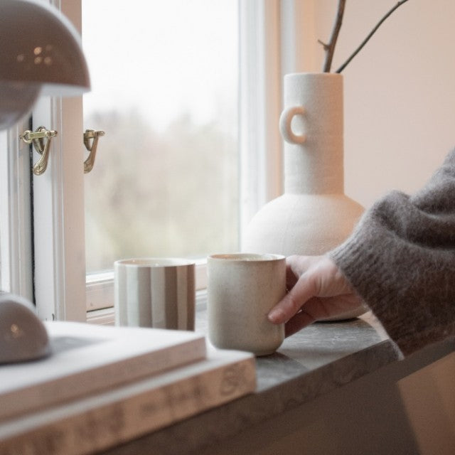 Når lyset er brent opp, kan krukken gjenbrukes som en stilfull dekorasjon i hjemmet – perfekt til oppbevaring, som liten blomsterpotte eller til penn og småting. Dette duftlyset har en høyde på 10 cm og har fargen krem med beige striper.