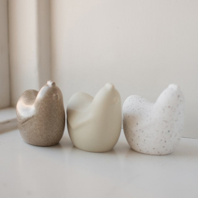 En mini-høne i lune farger på jakt etter et fint rolig liv på en gård, eller en leilighet, eller et hus... eller et rom! 9 x 6 x 8 cm. Keramikk.
