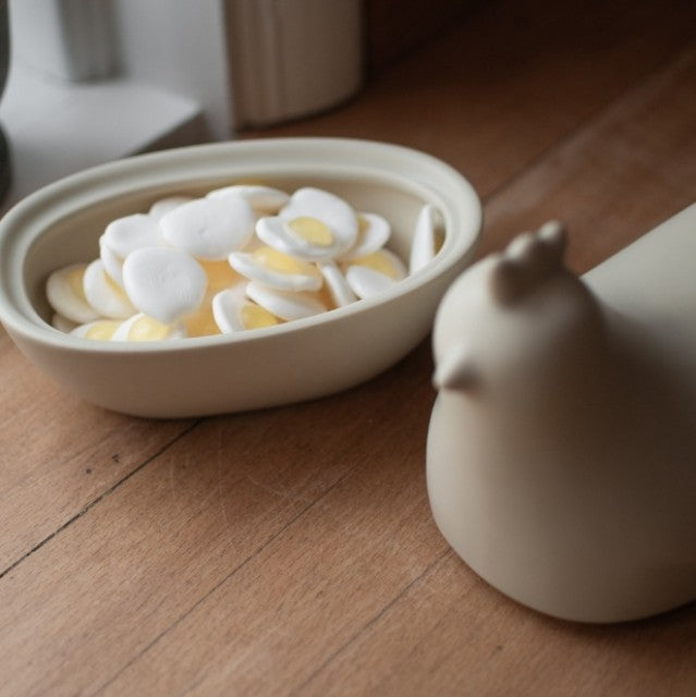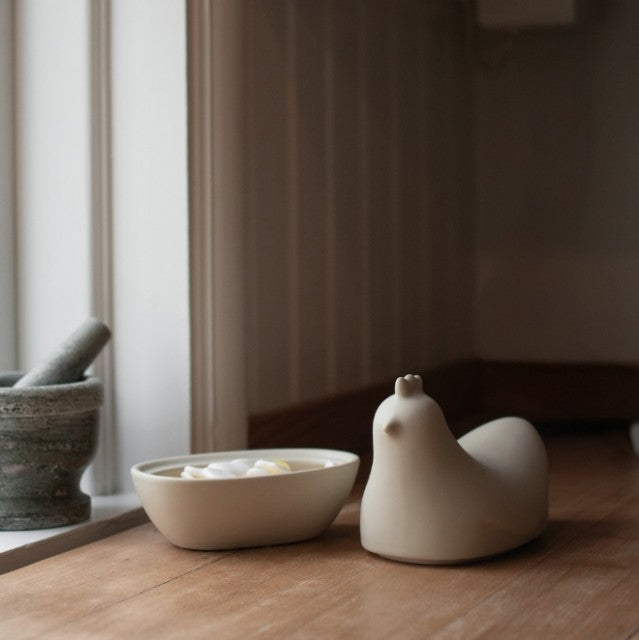 Happy Hen krukke fra DBKD med et stilrent design i keramikk med et dekorativt lokk perfekt til påske og for pen oppbevaring. 18 x 12,5 cm, høy 16,5 cm.
