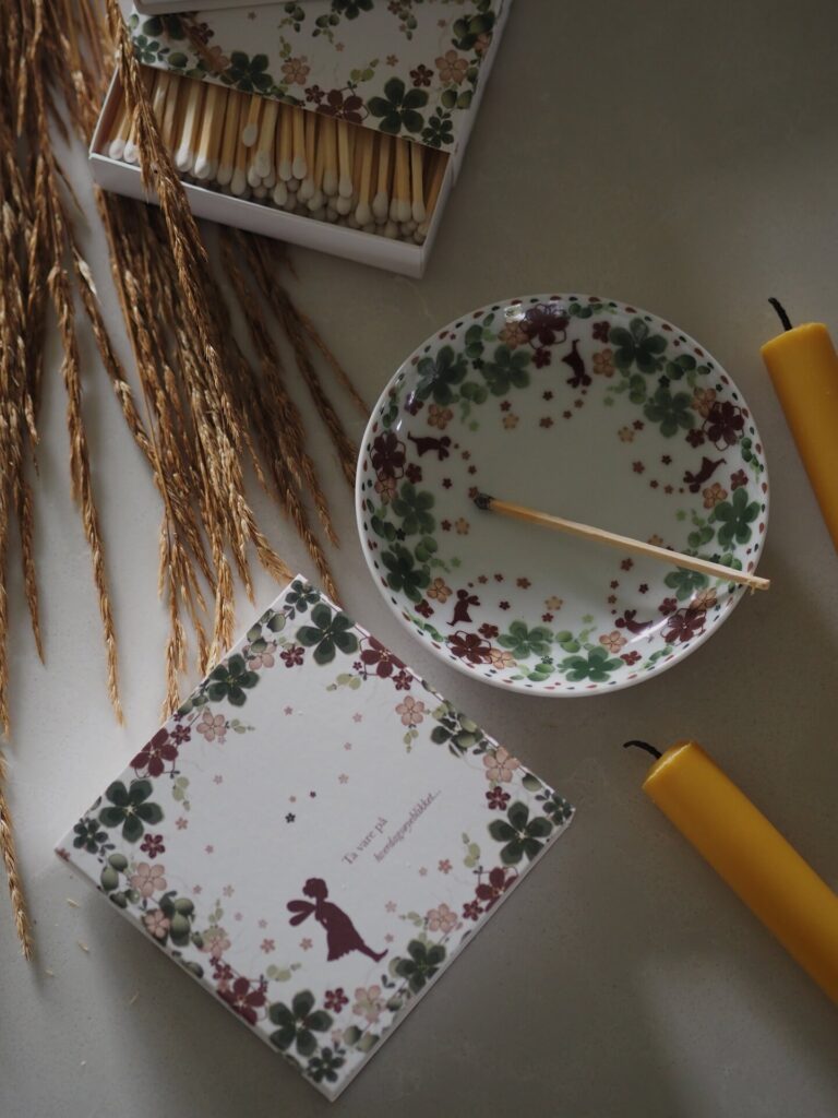 Store dekorative fyrstikker med motiv fra Alveblomst-kolleksjonen.