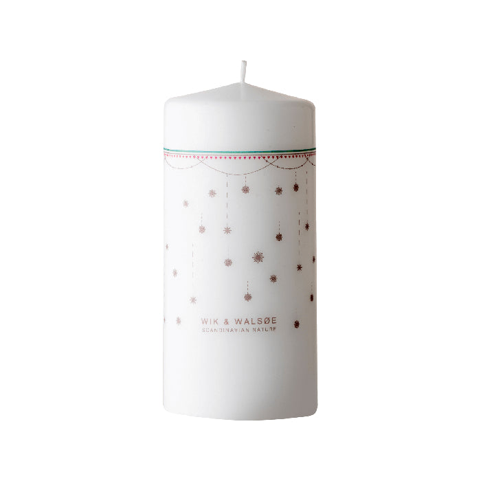 Julemorgen lys er dekorert med delikate hjerter, snøfnugg og girlandere.