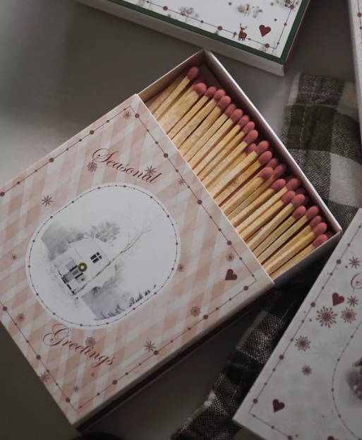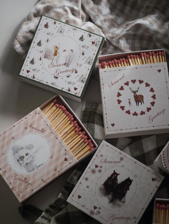 Store dekorative fyrstikker med motiv fra Wik & Walsøes Julemorgen-serie.