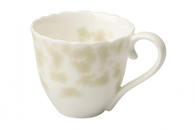 Slåpeblom grønn kopp i edelt benporselen av høy kvalitet. Slåpeblom kjennetegnes ved den ujevne og bølgete kanten som fremhever følelsen av håndverk. Koppen tåler hverdagens bruk, og er skapt til å vare.