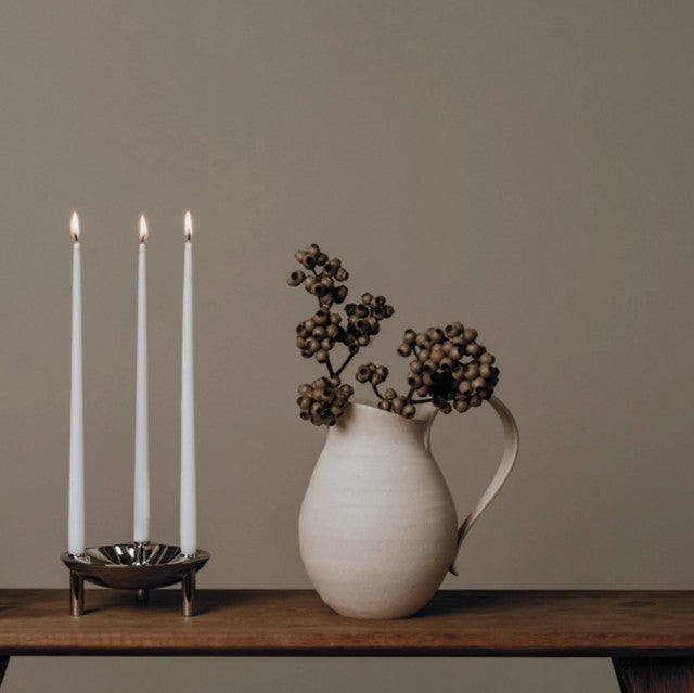 Det inviterer deg til å være enda mer kreativ med STOFF Nagel-kolleksjonen din ved å legge til koniske lys og kombinere den med et antall STOFF Nagel lysestaker for å oppnå en enda større og mer personlig skulptur. Bollen kan fylles med all verdens dekorasjoner eller stearinlys, men du kan også la den stå alene med sin vakre og rene design.