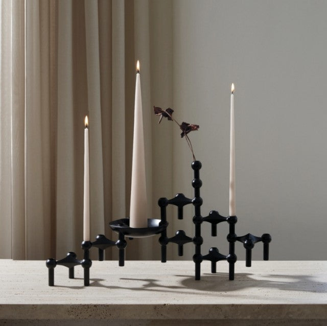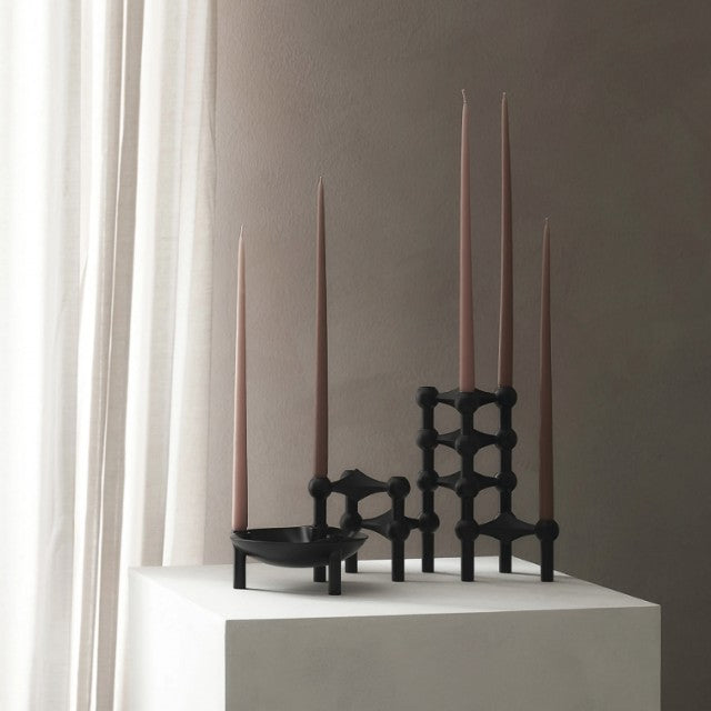 Det inviterer deg til å være enda mer kreativ med STOFF Nagel-kolleksjonen din ved å legge til koniske lys og kombinere den med et antall STOFF Nagel lysestaker for å oppnå en enda større og mer personlig skulptur. Bollen kan fylles med all verdens dekorasjoner eller stearinlys, men du kan også la den stå alene med sin vakre og rene design.