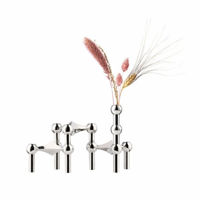 STOFF Nagel Vase er et av de siste medlemmene av STOFF Nagel-familien som ble lansert i 2019. Den er designet som en naturlig fortsettelse av det karakteristiske STOFF Nagel-uttrykket og kan festes til både lysestakene, bollen og stativet. STOFF Nagel-vasen gir den klassiske designen en ekstra dimensjon og lar deg inkludere en fargerik blomsterdekorasjon etter eget valg i skulpturen. Avhengig av sesong og trender kan både friske og tørkede blomster brukes i vasen.