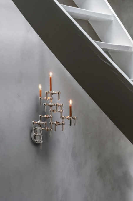 Vegghengt lysestake fra STOFF Nagel med et klassisk, ikonisk formspråk og uendelige muligheter for å fremheve den elegante silhuetten og gi designet et velbalansert utseende.