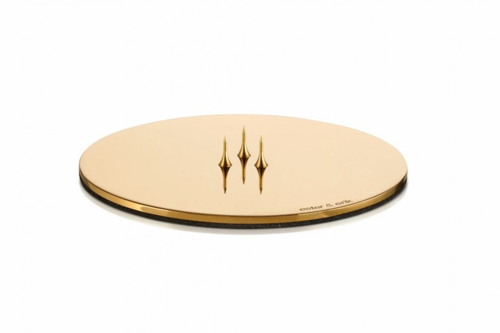 Lysplate fra Ester & Erik i blank gull. Passer supert til kubbelys og kjeglelysa fra samme merke.