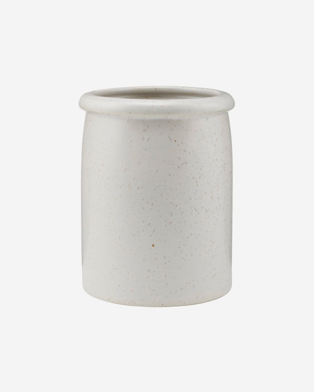 Organiser kjøkkenartiklene dine med stil med Pion-krukken fra House Doctor. Den er laget av porselen og er avsluttet med en hvit, flekkete glasur som gir den et fint, men uformelt preg.