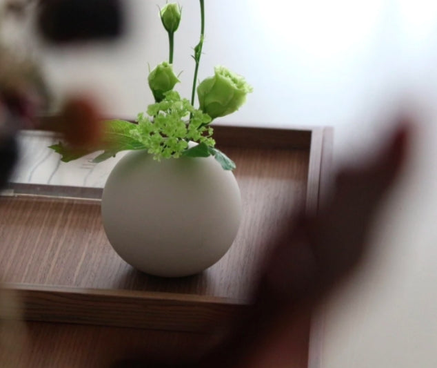 Ballvasen var begynnelsen på en ny reise for Cooee. Den runde minimalistiske vasen var det første produktet i den levende kolleksjonen, lansert i 2015. Vasen har en matt, myk overflate, som også har blitt et kjennetegn for merket. Hver vase er håndlaget og håndmalt, noe som gjør hvert stykke unikt. Materiale: Keramiske mål (cm): B: 10, L: 10, H: 9 Vekt: 350g Design: Cooee Design
