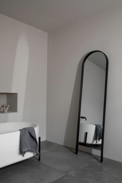 Woody gulvspeil 46 x 170 cm fra svenske Cooee Design er et stilig speil med sortmalt eikeramme. Gulvspeilet er designet av Eddie Gustafsson som i sitt samarbeid med merket har hatt stort fokus på bærekraft.