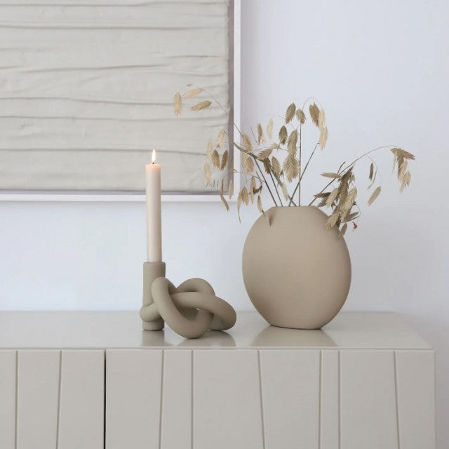 Lykke One lysestake fra Cooee Design er tegnet av arkitekten Tim Torp Hansen. Det skulpturelle uttrykket passer godt inn i det moderne hjemmet og gjør lysestaken Lykke vakker å se på, selv når du ikke har tent lyset.