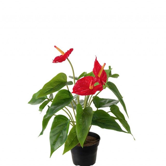 Kunstig rød Anthurium fra Mr Plant. Perfekt til de som ikke har grønne fingre men som likevel ønsker den koselige atmosfæren som planter og blomster gir til rommet. H: 35cm. Ø: 10cm.
