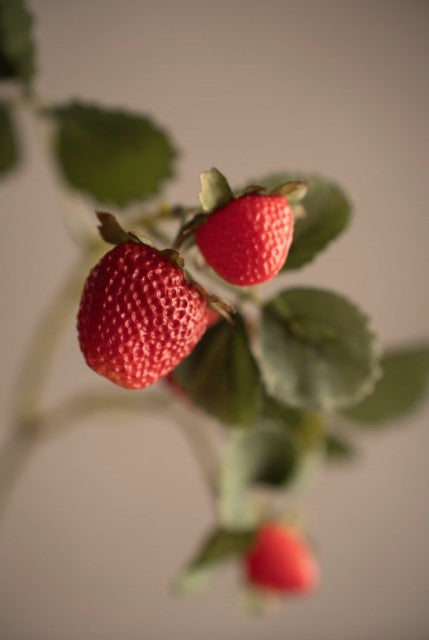 Denne vakre jordbærkvisten med rikt detaljerte bær og blader er et sommerlig og livlig innslag! Denne kunstige kvisten er perfekt for å gi et preg av natur til hjemmet ditt. Plasser den i en vase eller bruk den som en del av en større oppsats. Som et av Europas ledende produsenter innen kunstige planter, er planter fra Mr Plant naturtro og av god kvalitet. De har et bredt utvalg av planter, blomster, kvister og trær som vil vare for alltid! De fleste av plantene kan i tillegg klippes og bøyes slik en måtte ønske.