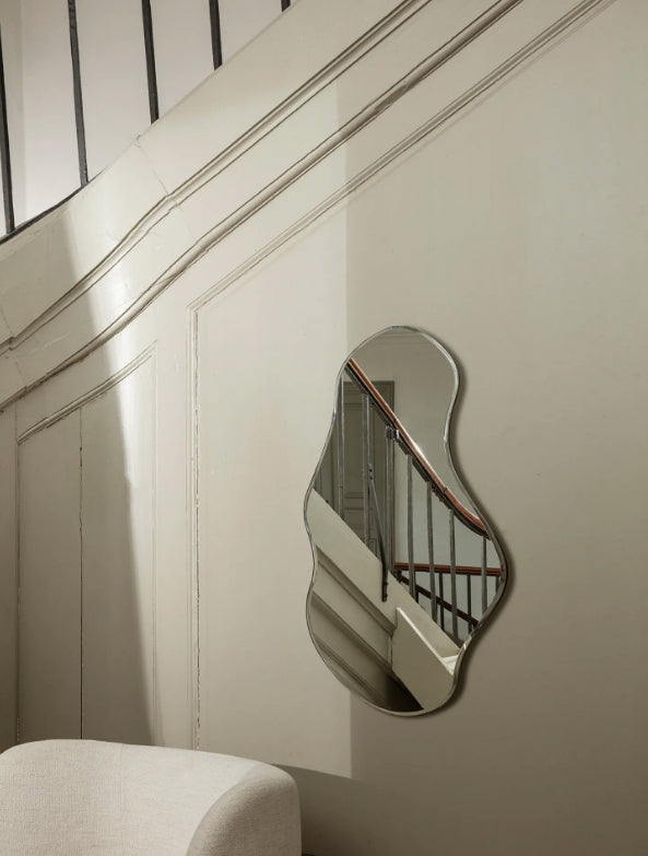 Med Pond speil fra danske Ferm Living får du ikke bare et funksjonelt speil, men også dekorativ veggpynt. Speilets form er inspirert av hvordan vannet beveger seg fritt. Speilet kan henges både loddrett og vannrett.